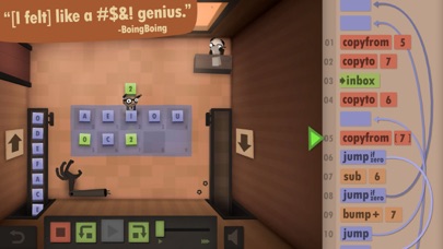 小さな従業員をプログラミングしてパズルを解こう!このゲームにはよくわからない二進法やタグ、読めない記号は登場しません。プログラムとは本来、単純で合理的、かつ美しく、誰にでもできる楽しいものなのです。各ステージで上司が課題を出します。いかに効率の良いプログラムを組めるかが成功者になるカギです。成果がよければ翌年昇格!